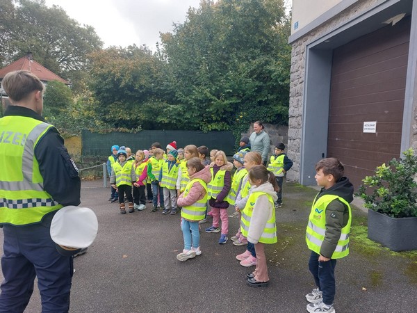 Im Rahmen der Verkehrserziehung besuchten uns eine Polizistin und ein Polizist an der Schule. Dabei lernten die Kinder, wie ein Zebrastreifen richtig überquert wird. Es war eine sehr lehrreiche und wichtige Stunde für die ersten Klassen. Vielen Dank an die Polizei!